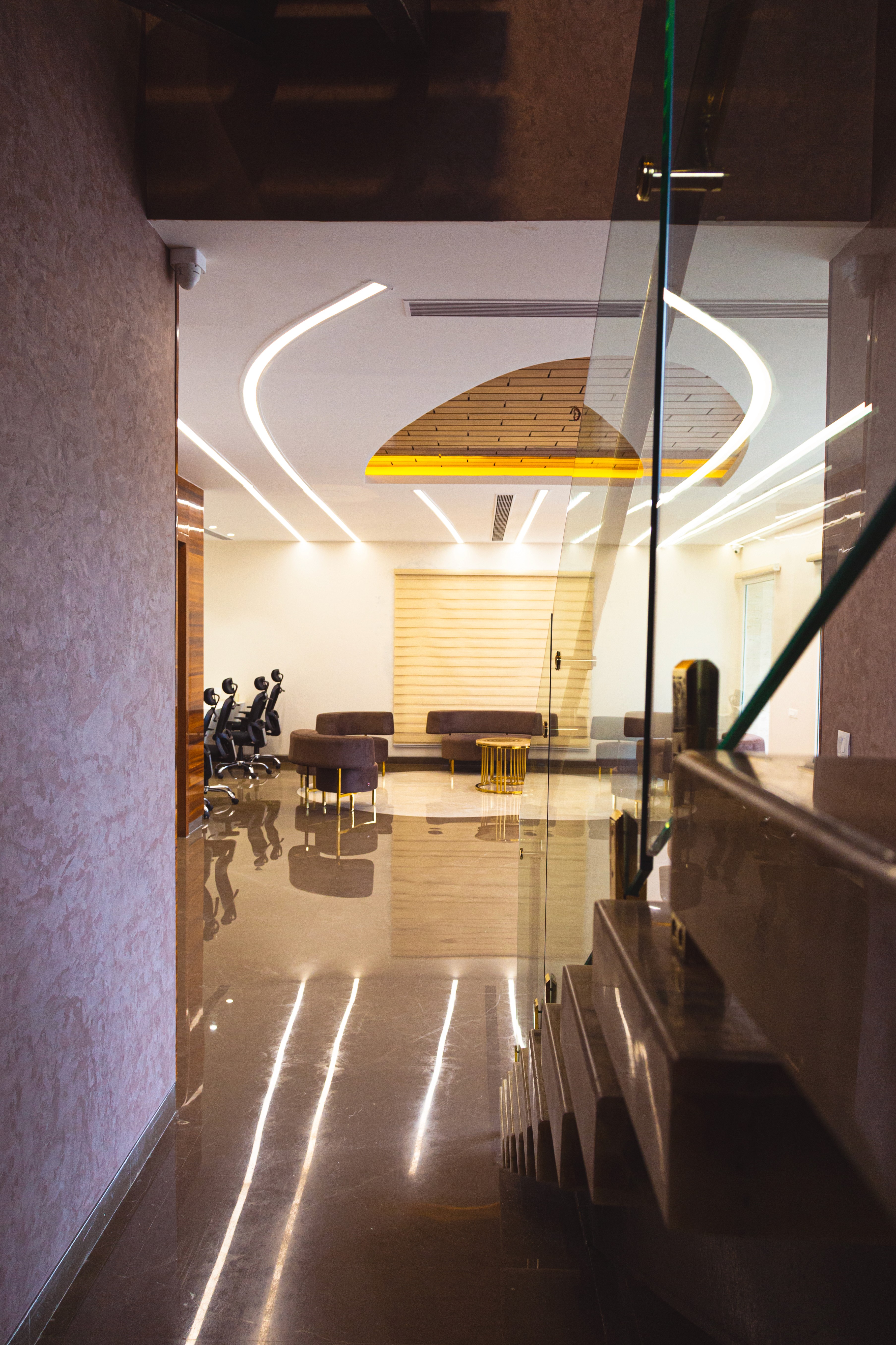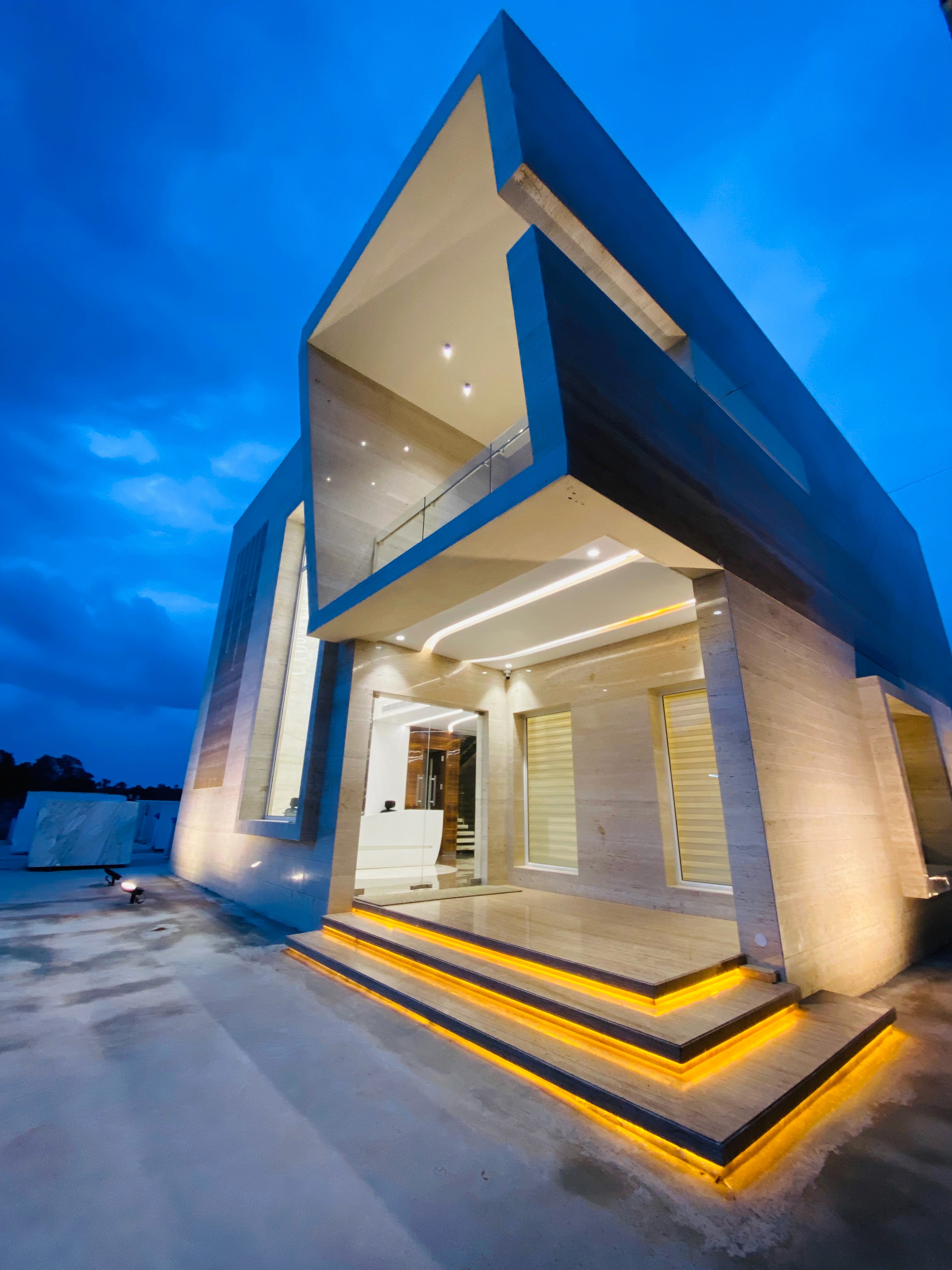 Right from its inception, the Bohra Marble World corporate office was destined to be an architectural marvel. This striking G+1 structure, serving as a testament to the company's vision, immediately captures attention with its daring cantilevered design, creating the illusion of a building gracefully levitating above the ground.