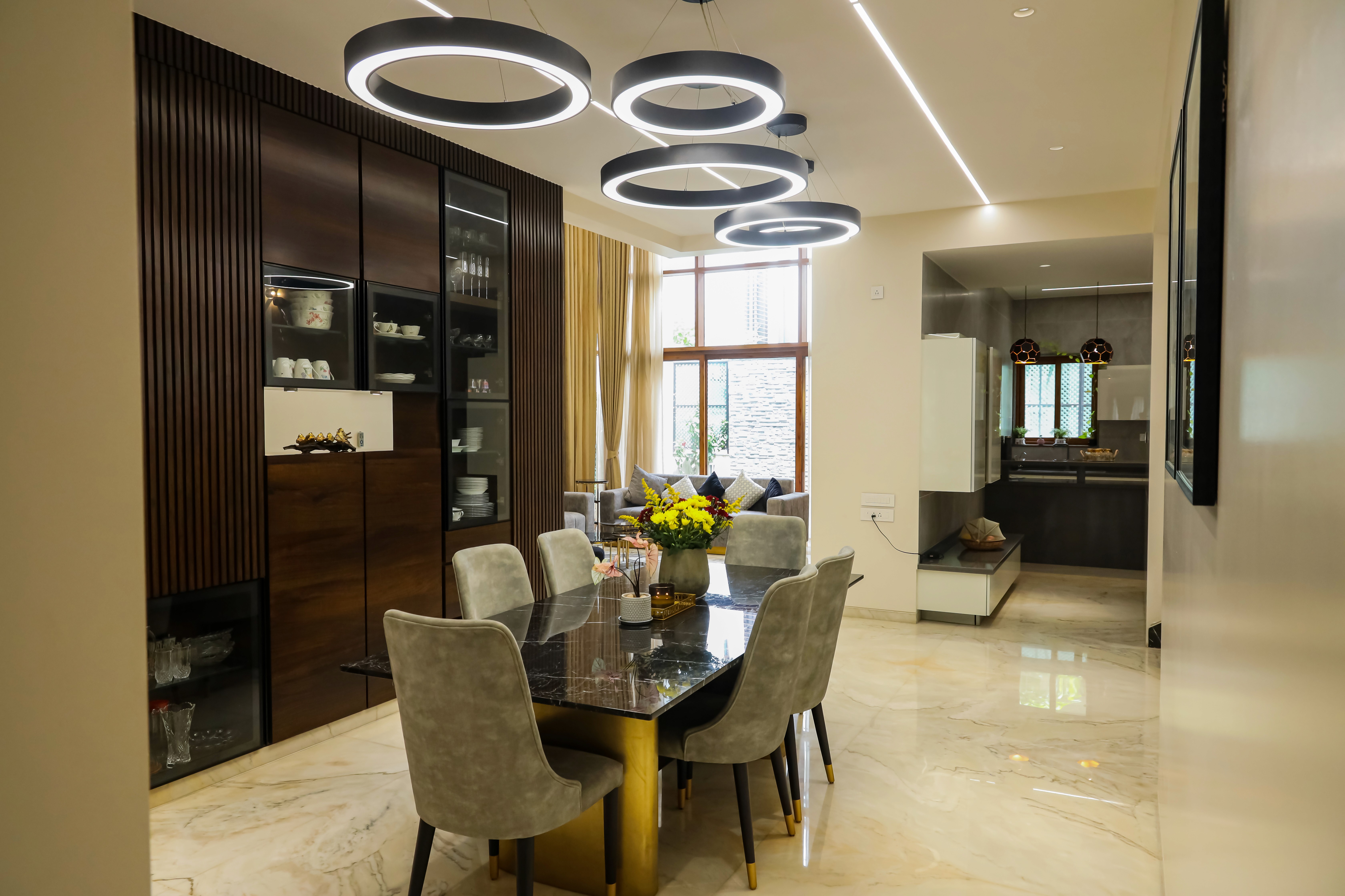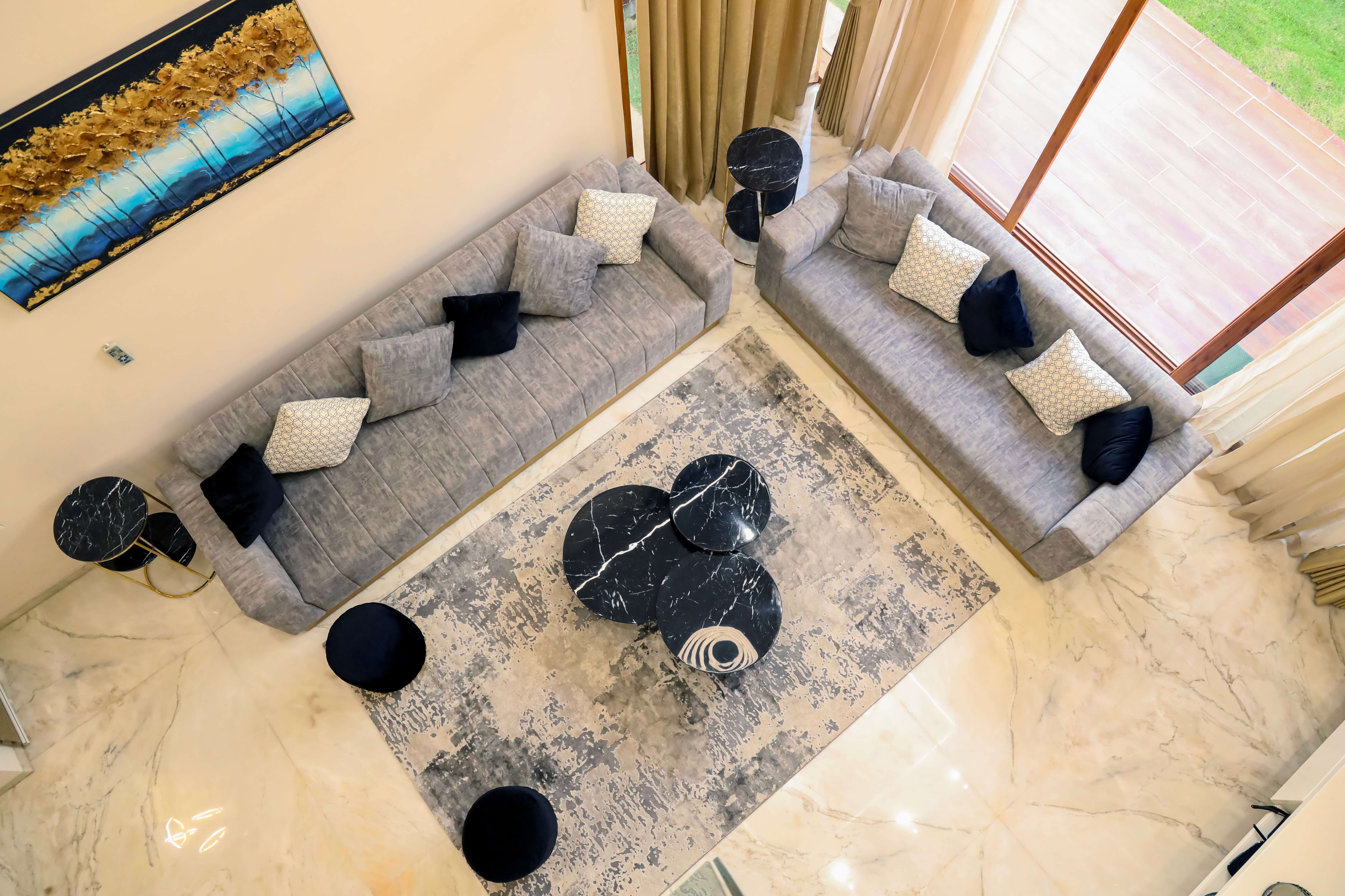 Step inside, and the villa's modern, contemporary feel embraces a seamless flow, guiding you effortlessly through its spaces. Generous windows invite an abundance of natural light, creating a soothing interplay of light and shadow that dances gracefully throughout the day. The double-height living room is a true showstopper, adding an impressive sense of volume and grandeur. This expansive space thoughtfully overlooks a beautiful outdoor sitting area and a lavish garden, blurring the lines between indoor comfort and outdoor splendor.